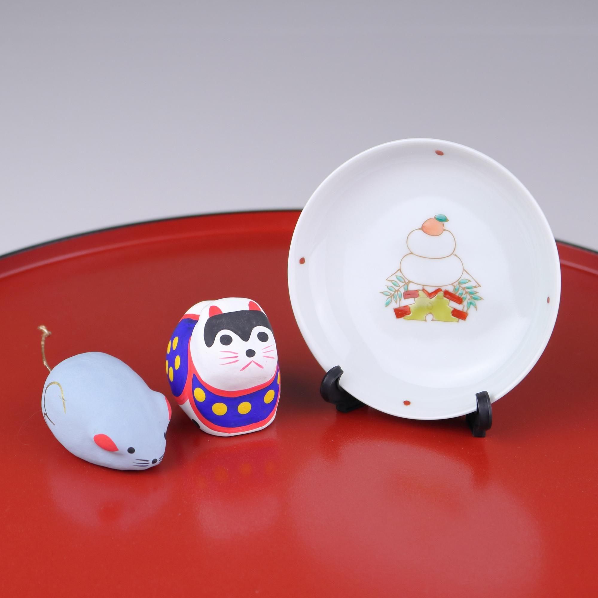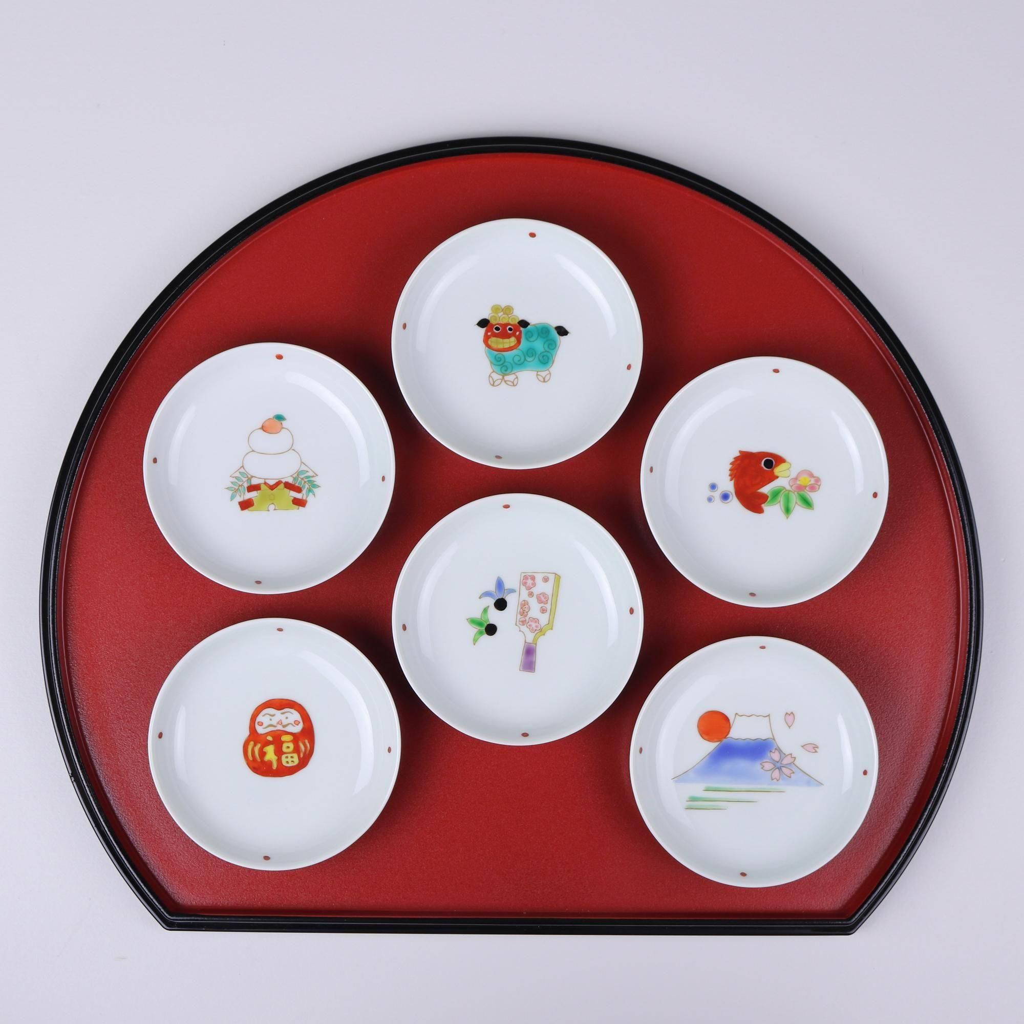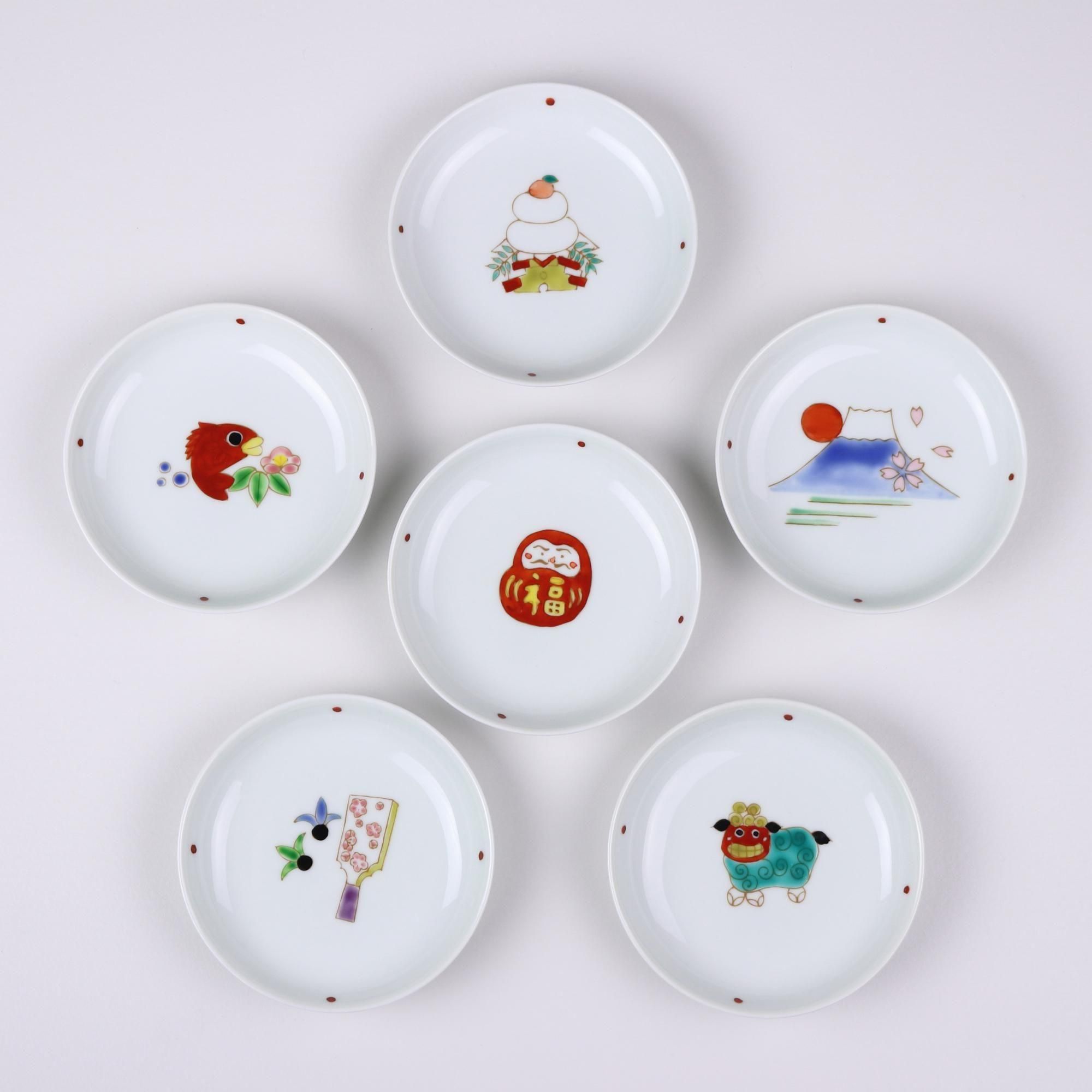 おめでたいお正月モチーフの小皿に好きな料理を盛り付ければ