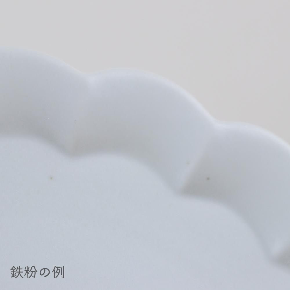 鉄分を含んだ釉薬が使われているため、所々にそばかすのような小さな点(鉄粉)があります。