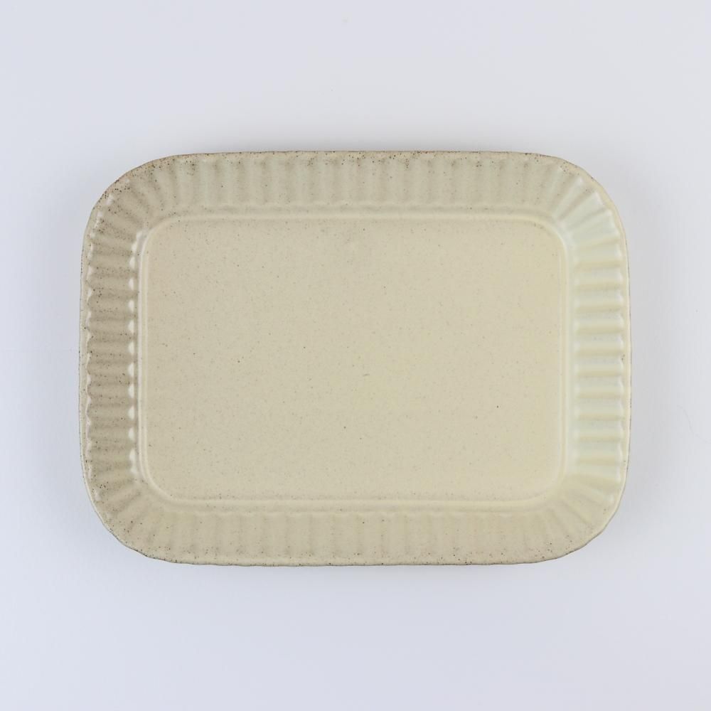 目玉焼きとベーコンをのせたり、ムニエルなどのお魚料理に使いやすい長方形のプレート。