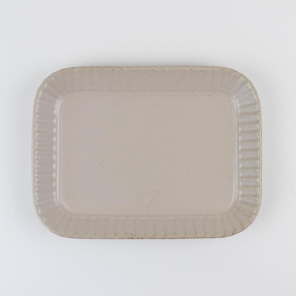 目玉焼きとベーコンをのせたり、ムニエルなどのお魚料理に使いやすい長方形のプレート。