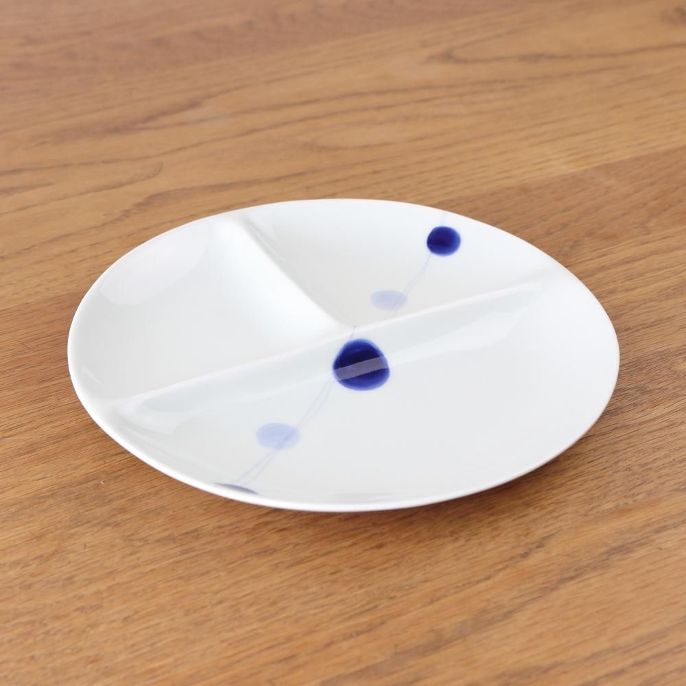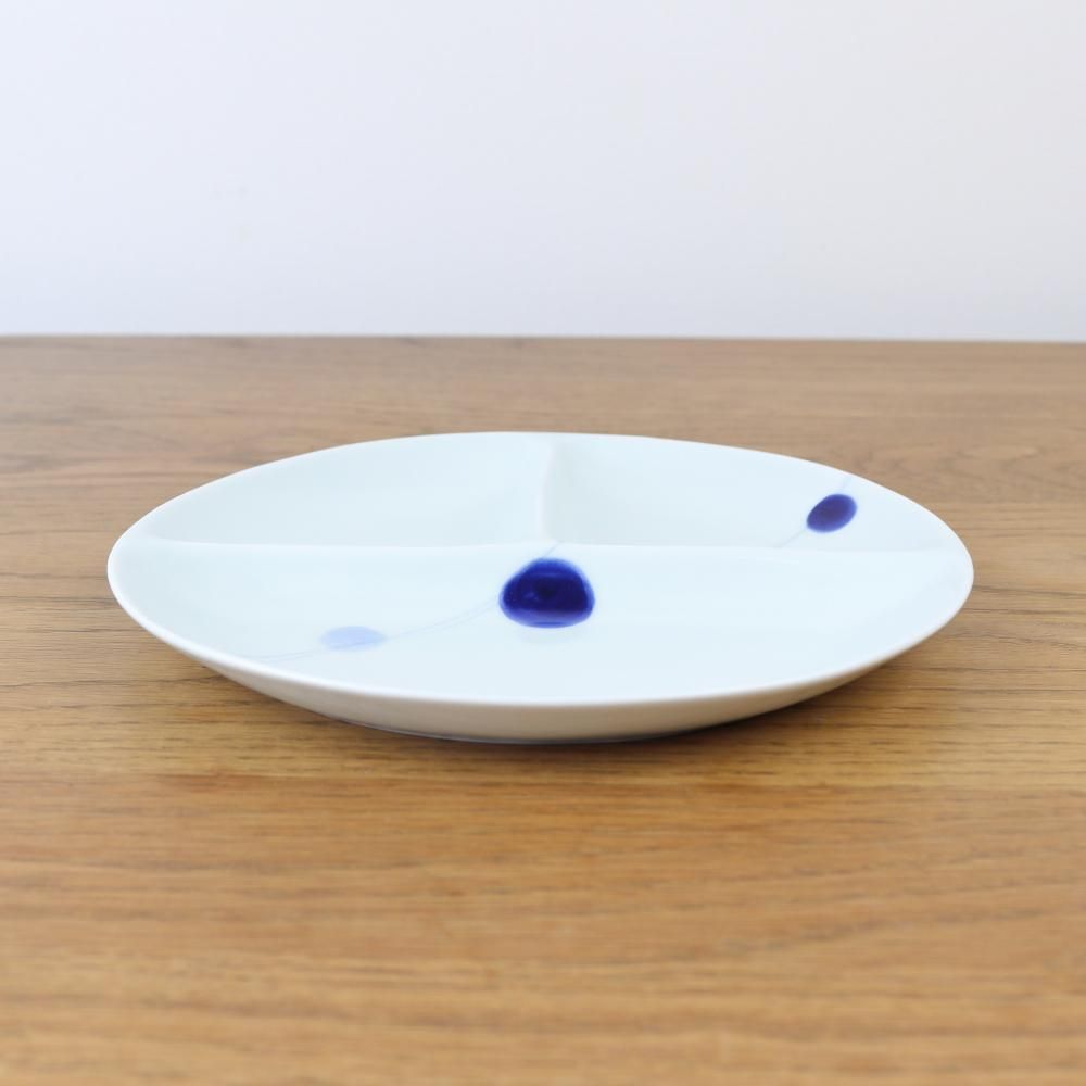 3つに仕切られたお皿は、焼き魚・卵焼き・和え物や、