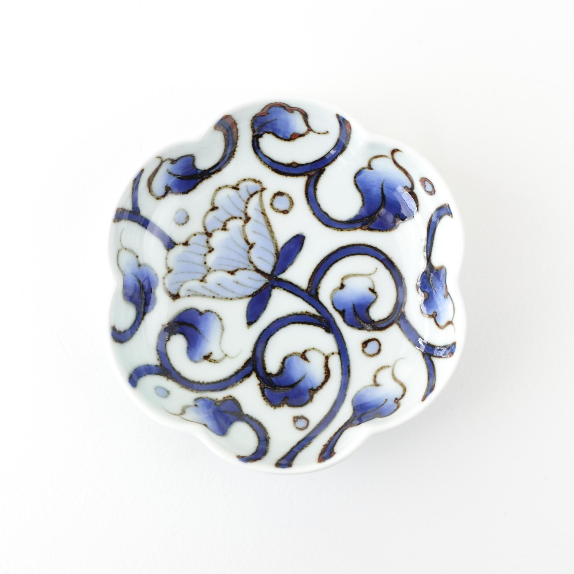 輪花小皿 舞い牡丹